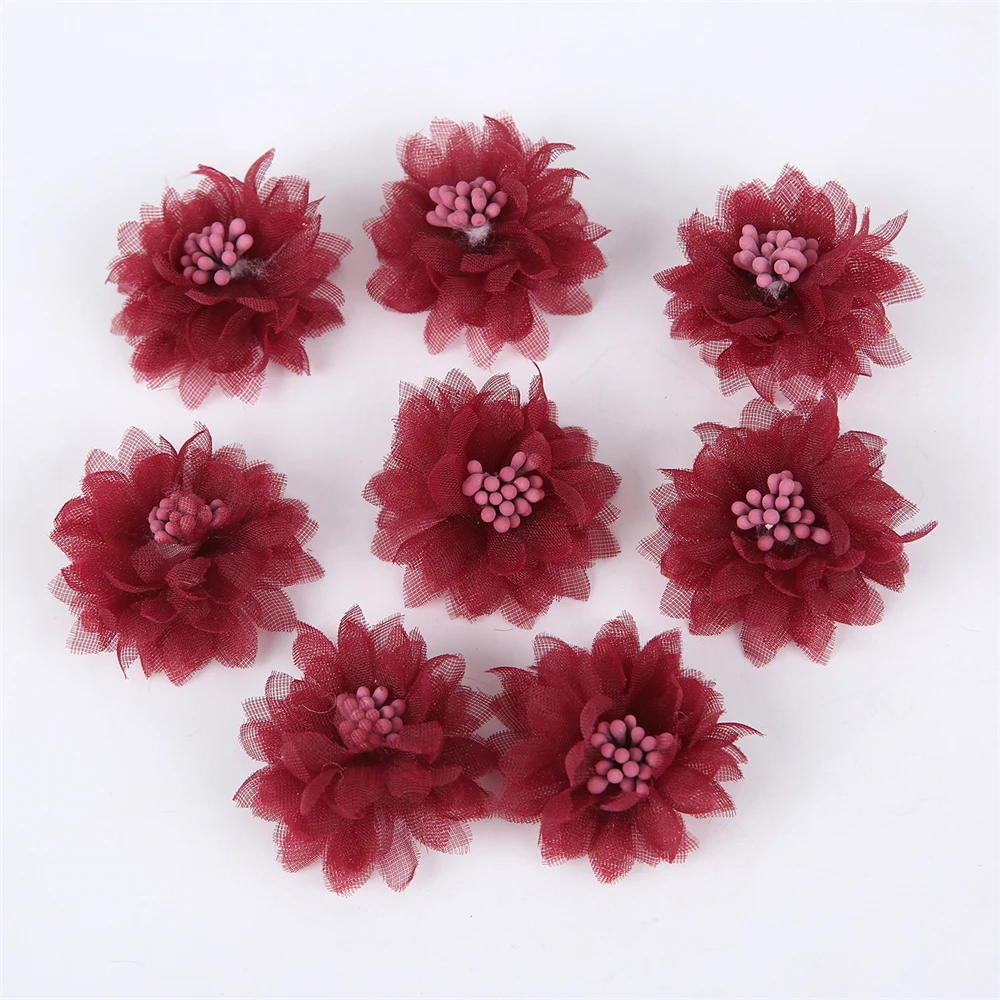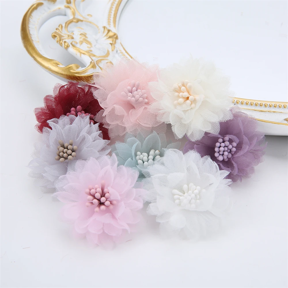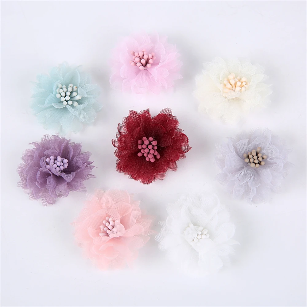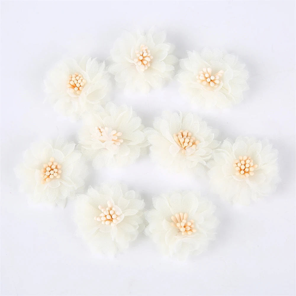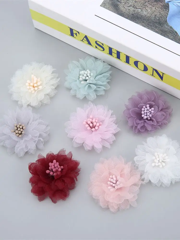 10Pcs Chiffon Flowers DIY Flowers Headwear Hat Dress Decorations Clothes Accessories Hair Accessories Artificial Flowers